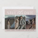 A modern save the date card designed to accommodate three vertical engagement photos aligned in a side by side layout. "Save the date" appears beneath in chic block and script lettering, along with your names, wedding date and wedding location. Cards reverse to reveal additional save the date details.
