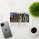 A modern save the date card designed to accommodate two engagement photo (one vertical and one horizontal, aligned side by side). "Save the date" appears beneath your photos in gold foil block and script lettering, along with your names, wedding date and wedding location. Personalise the back with additional details, such as your wedding website.