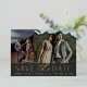 A modern save the date card designed to accommodate two engagement photo (one vertical and one horizontal, aligned side by side). "Save the date" appears beneath your photos in gold foil block and script lettering, along with your names, wedding date and wedding location. Personalise the back with additional details, such as your wedding website.