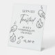 It is sturdy than I expected. Was worried about the material being flimsy but it is not. It is printed on some sort of plastic material. It should serve well at our wedding as long as wind isn’t too bad. Otherwise we will put some paper weights behind it and should be fine.