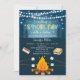 This adorable invitation features our hand drawn s'mores and campfire illustrations with stars, trees and glowing string lights.