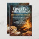 Smore fun with friends! Celebrate your birthday or special occasion with this fun campfire camping bonfire fire pit themed custom invitation. Beautiful generative ai artwork with a roaring campfire pit and stack of delicious gooey chocolate, marshmallows and graham goodness. Customise it with your event details.
