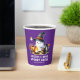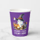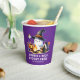 Make funny purple personalised paper cups for the camping theme Halloween party with kids with a cute design that features a cheerful ghost in a witch hat roasting marshmallows at the campfire. The graphic is with the saying "S'more & Boos Spooky Crew." The template makes it easy to customise with your family name or any text for the non spooky outdoor party with children.