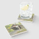 The coasters are gorgeous, a quality feel and heavy weight. They look like a precious archeological find. A rustic stone juxtaposed with a modern floral black and white print. I like the way the print goes slightly imperfect on the cut stone edges giving them a kind-of natural beauty.