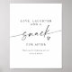 Treat your guests to something special with this modern black and white wedding snacks sign featuring the phrase “Love, laughter and a snack for after” with a sweet heart detail. Designed in minimalist handwritten typography, this simple tabletop sign adds a stylish, contemporary touch to your wedding dessert or late-night snack table. Perfect for modern weddings, this elegant wedding tabletop sign blends timeless charm with clean, black and white design.