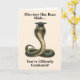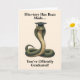 Send your congratulations with a unique twist. This graduation card features a striking cobra, upright and poised, wearing a classic graduation cap and looking intently straight ahead, ready to take on the world. Perfect for anyone who appreciates bold designs and a touch of humor with their milestone moments.
