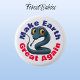 Make Earth Great Again, button featuring a cute indigo snake, woodland forest safari wildlife animal cartoon graphic broadcasting a powerful environmental message for a healthier planet. A perfect stylish way to remind yourself and others of the importance of making eco-friendly choices every day.💚 Customise by changing the text, the font, the font colour, or remove the text. You can even transfer this whimsical serpent onto other products. Enjoy this design your way!