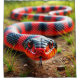 This shower curtain has a snake pictured on it.
