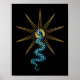 Snake and gold Sun Spiritual Art. This design can be printed on many different types of paper, canvas, wood, choose the perfect look for your walls. This design is part of my Spiritual, Cosmic and Mystic collection. The slithering snake is bright blue with black accents, it stands out beautifully with the black backround and gold Sun. The snake symbolises, wisdom, and transformation, and the sun is energy, power, and positivity. This stunning print can easily be put into a frame to elevate it’s look. It would look beautiful in any room of your house, or office.