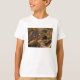 100% cotton so perfect for summer, It is a nicely designed t-shirt, the fabric is soft and the seams finished well, the body of the t shirt has no side seams. I bought a medium size for my two grandsons, aged 9 and 8 it will be slightly big on them but I would rather that than too small