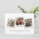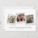 A modern save the date card featuring three photos framed to look like instant photographs. Each photo frame has a space for information about your upcoming wedding.