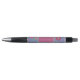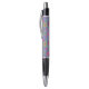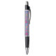 Snazzy personalised pen with purple and green flower power pattern on a blue background.