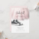 Invite your guests to your sneaker ball with this sweet party invitation featuring a light pink tulle skirt and black and white sneakers. This illustration is AI generated.