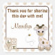 Square stickers perfect for favour tags, cupcake toppers, envelope labels, etc. Matches MonkeyHutDesigns' Baby Shower Invitations. Featuring an adorable baby GIRAFFE with a BEE friend buzzing about. Features shades of BROWN & CREAM and POLKA DOTS (Design# 135). Customise with your own wording/greeting.