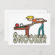 Snooker design shows a snooker player leaning over the table, holding cue and lining up the shot. This could be the start of a good break, a 147 maximum or playing the safety back to baulk.