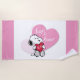 Peanuts Valentine's Day | Check out Snoopy holding onto a red heart, with pink hearts in the background that read: "hugs & kisses".