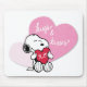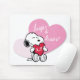 Peanuts Valentine's Day | Check out Snoopy holding onto a red heart, with pink hearts in the background that read: "hugs & kisses".