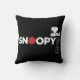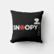 Snoopy relaxes against a rock on top of his name in English and Japanese.