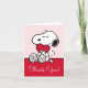 Send your thanks with the purest expression of affection! This beautiful Snoopy Thank You Card features the beloved beagle sweetly holding a bright red heart against a soft pink background. It's the perfect card for conveying deep appreciation, whether it's for a thoughtful gift, a kind gesture, or to celebrate love on any occasion. This card inside message to match your heartfelt sentiments. The classic black-and-white Snoopy illustration paired with the gentle pink backdrop creates an instantly warm and affectionate greeting that recipients will cherish.