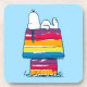 Snoopy is the loveable pet beagle of Charlie Brown in the comic strip Peanuts by Charles M. Schulz. Check out this cute colorful Peanuts design featuring this loveable dog and his house.