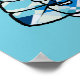 This vibrant poster or art print features a large-scale graphic of the beloved Snoopy character dressed warmly for the cold. Snoopy is prominently displayed wearing a puffy winter coat patterned with a striking blue and white geometric/mosaic design, and topped with a red and white knit cap, all set against a bold, solid blue background. This print is a unique and cheerful piece of wall décor, perfect for adding Peanuts charm to a bedroom, office, or any space during the winter season.