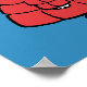 This vibrant poster or art print features a large-scale graphic of the beloved Snoopy character dressed warmly for the cold. Snoopy is prominently displayed wearing a large, puffy red winter coat and a blue and yellow knit cap, set against a striking, solid blue background that fills the entire square frame. This print is a bold and cheerful piece of wall décor, perfect for adding Peanuts charm to a bedroom, office, or any space during the winter and holiday season.