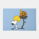 Celebrate Halloween with this charming design featuring Snoopy, the beloved beagle, gazing up at the warm glow of a full autumn moon. Woodstock sits cheerfully atop a playful jack-o'-lantern nestled in his tree-top perch. With classic Peanuts charm, this design captures the magic of the Halloween season, perfect for adding a touch of nostalgia and whimsy to any holiday occasion. Ideal for fans of Snoopy and timeless Halloween fun!