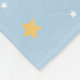 This is a cozy and soft baby blanket featuring the popular "Over the Moon" theme, perfect for a nursery or as a thoughtful baby shower gift. The design showcases the familiar, sweet illustration of Snoopy sitting peacefully, surrounded by a pattern of small stars and a prominent crescent moon. The overall look is serene and whimsical, making it an ideal item for naptime, swaddling, or use as a nursery accessory for any little fan of the classic Peanuts character.