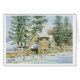 Greeting card with Stowell Park Lodge snow scene in watercolour.