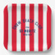 Snow Beach Club Red Cabana Stripe Custom Ski square paper plate. Personalise with the year of your ski trip, ski resort name and location. Perfect for a group destination ski trip or for a ski or snow theme bachelor or bachelorette party. Designed to match our Snow Beach Club Red Cabana Stripe Collection.