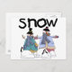 Two snowman buddies and a couple of little penguins play together in the snow on a winter day on Snow Buddies T-shirts, hoodies, mugs, cards, magnets, tote bags, and other snowman gear.