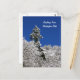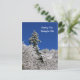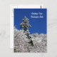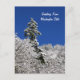A seasonal postcard with a photograph of a snow capped mountain in the winter with an evergreen tree standing tall against the backdrop of a stunning blue sky in Washington State. Location: Ebey Hill, a mountain summit in Snohomish County in the state of Washington (WA). City of Arlington, near Trafton.