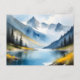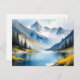 Snow capped mountains and a lake postcard
