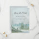 Our mountain wedding Save the Date card with a painting of snow-capped mountains surrounded by pine trees and overlooking a gorgeous lake is the perfect way to announce your mountain wedding. The beautiful painting captures the majesty of the mountains and sets the tone for a celebration of love and nature. This Save the Date card is a great way to add a personal touch to your wedding invitations, and it gives your guests enough time to plan for your wedding, especially if you're having a destination wedding or if many of your guests will need to travel.