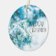Berries hang off a branch covered in snow in this winter-inspired ornament.