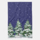 Snow Covered Evergreen Trees with Snow Falling Tea Towel