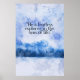 a beautiful watercolor painting of a snow-covered forest with frozen lake and a motivational quote.