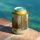 Can cooler with a beautiful nature photograph. An isolated winter path with tall snow covered pine trees.