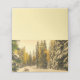 A place card with a beautiful nature photograph. An isolated winter path with tall snow covered pine trees.
