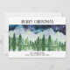Send peaceful holiday wishes with this enchanting watercolor Christmas card, featuring a serene alpine scene of evergreen trees reflected on a still lake beneath a starry night sky. Snowy mountain peaks glow with hints of soft pastel, creating a magical, wintry feel. The front reads “Merry Christmas” in bold black serif type, with space below to personalise with your family name. A unique and artistic choice for nature lovers and those who appreciate quiet beauty during the holidays.