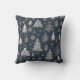 Embrace the winter charm with a throw pillow featuring white snow-covered trees and snowflakes against a navy blue background. This elegant accent piece effortlessly combines seasonal aesthetics with a sophisticated touch, adding a timeless and cosy ambiance to your home decor.