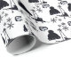 Snow hat, skis, goggles, & snowflakes on wrapping paper . Perfect for a snow day party.