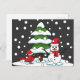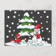 Snow Falling on Cardinal, Snowman and Pine Tree Holiday Postcard
