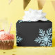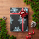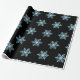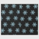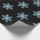 Beautiful wrapping paper featuring blue snowflakes on black background.