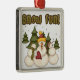Snow Fun keepsake ornament features three adorable snowmen and evergreen trees and text that reads "Snow Fun!".
