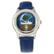 The blue band is the right color for a boys watch. My grandson loves lacrosse and the watch is easy to put on. He is ten years old. The lacrosse picture is very clear and I like the blue hands on the watch. It's good for teaching time.
