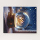 A cosy winter scene featuring a glowing house inside a snow globe, surrounded by softly falling snow. The perfect holiday gift or seasonal decoration. Puzzle size and number of pieces can be changed to any of the rectangular sizes offered.