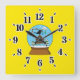 Snow Globe with Blackbird Singing Square Wall Clock