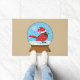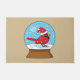 An illustration of a snow globe with a cute red cardinal wearing a red santa claus bonnet under a snow in a bright blue sky. This cute cartoon christmas waterglobe design is a gift idea for winter holiday lovers and, bird and animal lovers.