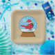 An illustration of a snow globe with a cute red cardinal wearing a red santa claus bonnet under a snow in a bright blue sky. This cute cartoon christmas waterglobe design is a gift idea for winter holiday lovers and, bird and animal lovers.